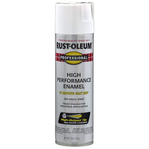Rust-Oleum 7590838 Spray Profesional de Esmalte de Alto Rendimiento, 425g, Blanco Mate. - Ideal para uso en metales ferrosos y no ferrosos, madera, concreto, mampostería y otras superficies similares para proporcionar protección contra la oxidación y un acabado resistente y atractivo que soporta las inclemencias del tiempo. - Fórmula a base de aceite de alta calidad y durabilidad que mantiene un color consistente y resistente a la corrosión a pesar de los elementos. - Cubre hasta 1.3 metros cuadrados, seca al tacto en 15 minutos y se puede volver a pintar en una hora para una rápida finalización del proyecto. - Fórmula para pinturas comerciales e industriales que incluye una punta de alta salida que puede pulverizarse en cualquier ángulo. - Acabado mate que ayuda a ocultar imperfecciones en la superficie y resiste ambientes exigentes de uso intenso.
