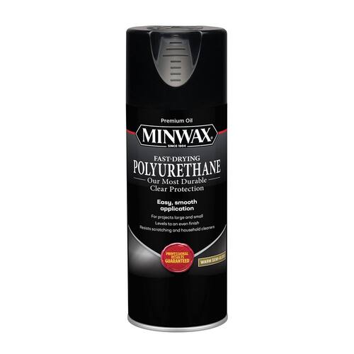 Spray de poliuretano de secagem rápida Minwax, acabamento protetor em madeira, semibrilho transparente, lata de aerossol de 11,5 onças (a embalagem pode variar) —