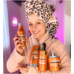 Além de ser um produto muito prático e não exigir enxágue, o produto sela as cutículas capilares, promovendo poderosa reconstrução da fibra capilar, restauração de fios secos e porosos, proteção térmica e maior penteabilidade.