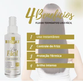 O liso fácil é um fluído termoativo condicionante em spray que ajuda na finalização de todos os tipos de cabelo. O fluído conta com o total de 20 benefícios que irão deixar os cabelos extraordinários entre eles: Sem parabeno; sem corante; proteção térmica; proteção solar; super brilho; maciez; anti frizz; protetor térmico; sela a cutícula capilar; perfuma os cabelos; hidrata os cabelos; blindagem; previne e melhora pontas duplas; reduz o volume do cabelo; repara danos; sem formol; cabelos mais leves; melhora os resultados da chapinha; suaviza os fios; reduz o ressecamento. Modo de uso Após lavar os cabelos como de costume, remova o excesso de água com uma toalha se preferir aplique um creme sem enxágue também. Agite o liso extremo e borrife o spray por todo o cabelo. Após a aplicação, penteie os cabelos e finalize e finalize utilizando chapinha, secador e/ou modelador de cachos. O liso fácil pode ser todas as vezes que for alisar os cabelos, pois através do calor, o produto é ativado. Anvisa: 25351095902202108 Quantidade do kit: 120 ml Compatibilidade: compatível com qualquer produto ou química, pois ele é natural Indicação: para todas idades e tipos de cabelos, para manutenção diária ou cabelos muito danificados principalmente após tratamento químico Marca: Não Informado