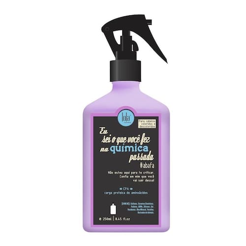 A Beleza com Web oferece o Spray CPA Lola Eu Sei o que Você Fez na Química Passada 250mlEu sei o que você fez na química passada: CPA - carga proteica de aminoácidos capaz de te proteger da mais agressiva de todas as químicas, não estamos aqui pra te criticar, pode confiar que você vai sair dessa.Spray CPA - Carga Protéica de AminoácidosO que é:Cabelos detanados por químicas agressivas? Isso não te pertence mais. Nosso CPA Shampoo Carga Ptróteica de Aminoácidos melhora a permeabilidade à umidade, a capacidade de retenção de água e possui propriedades antioxidantes. Formulado com aminoácidos seuqenciados e Fitosterol que mimetizam os aminoácidos presentes no Complexo da Membrana Celular, promove hidratação fortalecimento dos fios e proteção da cor e brilho.Indicação:Para cabelos coloridos, descoloridos e com químicas em geral.O que faz:Resultados incríveis quando utilizado após os processos de químicas de transformação, descoloração ou coloração para recuperação imediata da superfície danificada dos cabelos.O que mais você precisa saber:De origem vegetal, o Fitosterol está presente na soja, ácido graxo do coco e cana-de-açúcar. Garante restauração, aumento da massa protéica e recuperação dos fios.Como usar:Aplique uma pequena quantidade em toda a extensão dos fios, após o uso do CPA Shampoo ou após os processos de descoloração ou coloração e deixe agir por 5 minutos. Não enxágue. Finalize o tratamento com a Máscara CPA.Resultado:O tratamento com toda a linha, melhora a permeabilidade à umidade, a capacidade de retenção de água e possuem propriedades antioxidantes.Promovem hidratação, fortalecimento dos fios, proteção da cor e brilho. Resultados incríveis quando utilizados após os processos de descoloração ou coloração para recuperação imediata da superfície danificada dos cabelos.Bom Saber:Produtos liberados para as técnicas Low/No Poo.Este produto contém o selo Cruelty Free não testado em animais . Vegano.Este é um produto Eco-Friendy:não cpntém Parabenos, Ftalatos, OGM, Corantes Sintéticos, Silicones,Parafina,Óleo Mineral, Gluten.Dica:Use três vezes por semana em cabelos muito danificados. Em cabelos saudáveis, use uma vez por semana.Agite antes de usar.