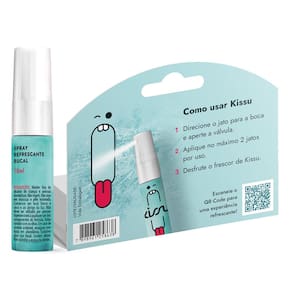 Spray Refrescante Bucal Kissu 15ml O Spray Refrescante Bucal Kissu 15ml é a solução ideal para manter um hálito fresco e agradável a qualquer hora. Com uma fórmula refrescante, elimina odores indeseja Marca: Não Informado