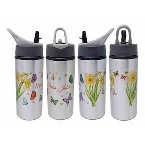 Com o Squeeze Garrafinha Garrafa Aniversário Flores e Borboleta você vai fazer com certeza alguém feliz presenteando com essa linda lembrancinha ou mesmo se presentear porque você merece!