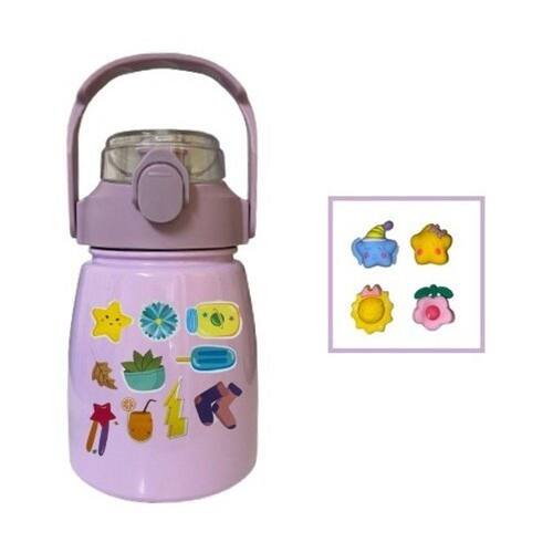É o produto mais eficiente para você que quer controlar a quantidade de água ingerida por dia. Com seu fecho na tampa evita vazamentos mesmo que esteja ao contrário. Com um design moderno e diferenciado, ela possui fácil abertura pressionando apenas um botão. Junto ao produto vem 12 adesivos para personalizar e uma alça regulável para transporte. Esta garrafa de água é adequada para camping, caminhadas, ciclismo, fitness e outros esportes.Preço por unidade.Características:- Material: Plástico, PP e PET- Medidas: 21cm (altura) x 12cm (diâmetro)- Extensão máxima da alça: 107cm- Extensão mínima da alça: 55cm- Volume/Capacidade: 800ml- Acompanha 1 cartela de adesivo com bottons em 3DPrecauções para uso:- Não armazene bebidas gaseificadas.- Evite quedas, colisões e impactos fortes, de modo a evitar a deformação geral da garrafa afetando sua função.