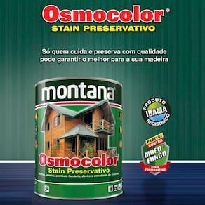 Como Aplicar: Certifique-se de que a madeira está seca, limpa e lixada. Aplique o stain com pincel ou rolo, acompanhando o sentido das fibras. Recomenda-se 2 a 3 demãos, respeitando o intervalo de secagem. Especificações Técnicas: Conteúdo: 900ml Cor: Canela Rendimento: Até 12m² por demão (varia conforme a porosidade da madeira) Secagem: Ao toque em 2 horas; total em 12 horas. Por que Escolher o Stain Osmocolor? Com o Stain Base Solvente Osmocolor Canela, você garante uma proteção completa e duradoura para a madeira, sem abrir mão do visual sofisticado. Invista na qualidade Montana e tenha madeira protegida e valorizada por mais tempo!
