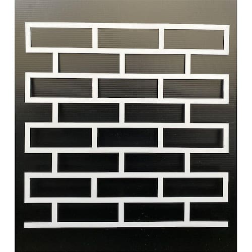 Material: Poliestireno resistente, com 1 mm de espessura, garantindo durabilidade e maleabilidade. Tamanho do Molde: 60 cm de largura x 60 cm de altura. Tamanho dos Tijolos: 15 cm de largura x 5 cm de altura. Cor: Preto
