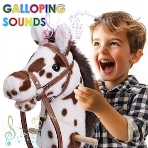 Desenvolva o equilíbrio das crianças: o cavalo equipado com rodas e alças é projetado para ajudar as crianças a aperfeiçoar seu equilíbrio e habilidades de coordenação por meio de atividades como caminhar, correr, pular e praticar esportes, além de promover o hábito de exercícios saudáveis. - Desenvolvendo a imaginação: o brinquedo de cavalo PLYFOU possui um design fofo que cativará as crianças; Depois de instalar baterias, basta pressionar a orelha esquerda para ouvir sons realistas de cavalo e cascos, proporcionando às crianças uma experiência de pilotagem autêntica - Desenvolvimento do equilíbrio: o mastro de madeira resistente, a alça e as rodas lisas garantem durabilidade e estabilidade; as crianças podem empurrá-lo livremente pela casa ou ao ar livre, desfrutando de horas de diversão - Sensação autêntica da experiência: as rédeas de couro não apenas se sentem confortáveis, mas também adicionam um toque de realismo ao taco de hobby; o design atualizado de rabo de cavalo torna o cavalo em uma vara mais interessante; as crianças podem controlar melhor esse "cavalinho", melhorando suas habilidades motoras e coordenação enquanto brincam - Ótima opção de presente: com uma altura total de 96,5 cm, este pônei de pau foi projetado para ter o tamanho ideal para crianças a partir de 3 anos; sejam crianças pequenas ou crianças um pouco mais velhas, tudo pode facilmente gerenciar e aproveitar a diversão de equitação - Nota de instalação: Cavalo para crianças de 2 a 5 anos tem orifícios ocultos em ambos os lados, alinhe os orifícios para instalar a alça, se você encontrar algum problema, sinta-se à vontade para entrar em contato
