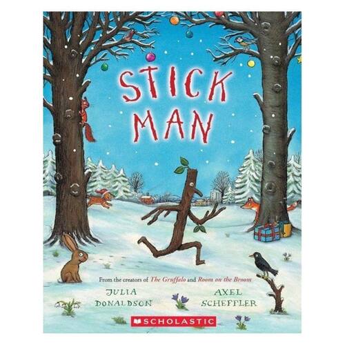 Stick Man lives in the family tree With his Stick Lady Love and their stick children three. But one day, Stick Man is carried off by a mischievous dog who wants to play fetch! Things go from bad to worse as Stick Man finds himself farther and farther from home. Lonely and lost, Stick Man desperately wants to be home with his family for Christmas. And when he helps Santa Claus out of a bind, he finds the perfect ticket home! Julia Donaldson's pitch-perfect rhymes and Axel Scheffler's witty illustrations combine for an unforgettable holiday adventure. Show Less