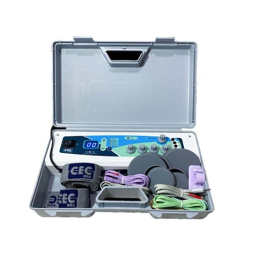 STIM 4 - Modelo atualizado CECBRA 5 Canais 4 corporais e 1 facial + 8 eletrodos corporais e 1 eletrodo facialA eletroestimulação é gerada através da formação de sinais elétricos que em contato com as estruturas biológicas produzem respostas terapêuticas, provocando a estimulação muscular, gerando uma contração involuntária do músculo tratado, diminuindo a flacidez muscular promovendo o fortalecimento, melhorando a circulação sanguínea. O Stim 4 é um eletroestimulador analógico, portátil, com configurações de tempo, contração, repouso e frequência. Sua intensidade é de 100mA, podendo ser ajustada, possui 4 canais e mais 1 facial, e é bivolt Efeito do STIM 4O efeito do STIM4 opera com Corrente Russa, que é uma corrente sinusoidal alternada bifásica de 2.500 Hz. Essa corrente é capaz de produzir níveis mais profundos de contração muscular, além de aumentar a força, sendo mais indicada para tratar músculos com inervação preservadas. Corrente RussaÉ uma corrente sinusoidal alternada bifásica de 2.500 Hz. Essa corrente é capaz de produzir níveis mais profundos de contração muscular, além de aumentar a força, sendo mais indicada para tratar músculos com inervação preservadas.Fluxos excitomotores causam contrações no músculo esquelético por estimulação direta das fibras motoras eferentes no tronco do nervo motor ou em um ponto muscular, a fim de alcançar uma contração semelhante à fisiológica normal. Áreas de Aplicação- Reabilitação: Uma consequência do trauma esquelético e/ou conjunto de traumas, um longo período de imobilidade ou pósoperatório, alterações como diminuição da força muscular, acompanhada de hipotonia e perda da função acometem a musculatura. Na categoria reabilitação pode- se acelerar o processo natural de cura, promovendo a diminuição da hipotonia muscular e, em seguida, para melhorar a força muscular, restaurando a função do músculo afetado.- Analgesia: Dores nas costas, braços e pernas devido às posições incorretas adotadas nas tarefas diárias. Também surgem após traumas ou esforços demasiados. A analgesia promovida pela corrente elétrica age nos mais diversos tipos de dor, melhorando consideravelmente a Qualidade de vida dos pacientes.- Desnervação: Esta área é aplicada em casos de desnervação, onde não há funcionalidade da musculatura alvo ou em casos de fraqueza muscular extrema.- Esporte: Nesta modalidade, a estimulação por correntes elétrica é utilizada como uma medida complementar para que os atletas possam melhorar seus desempenhos e atingir melhores resultados em menor tempo.- Estética: Vida sedentária, má alimentação, estresse, estilo de vida acelerado, levam à perda do tônus muscular, com diminuição da força muscular, resultando em músculos incapazes de exercer a função de apoio, contenção de órgãos internos e flacidez. A estimulação oferece soluções para quem deseja recuperar tônus e força muscular, melhorando a estética corporal. Indicações- Flacidez Muscular.- Tonificação Corporal.- Lipodistrofia Ginóide - Celulite.- Redução de Estase Líquida.- Trofismo Muscular. Dados Técnicos- Alimentação : 60Hz - Voltagem: Bivolt- Dimensões - 90 x 375 x 223 mm - Peso 3 kg.- Corrente de Estimulação: 100mA.- Consumo: 25VA.- Registro Anvisa - 80689300004.- NCM Classificação Fiscal - 90189099.- Normas Certificadas: IEC 60601-1, 60601-1-2, 60601-1-6, 60601-1-9.- Sistema de Qualidade: ISO 13485. ITENS INCLUSOS:1 - Equipamento Stim 41 - Fonte de alimentação destacável.1 - Aplicador facial.4 - Eletrodos 95mm4 - Eletrodos 65mm5- Cabos Coloridos2 -Faixas ajustáveis 120cm2 - faixas ajustáveis 60cm1 - Manual de Usuário.1 - Termo de garantia