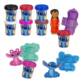 Este kit é uma estimulo a imaginação, as crianças criam histórias encantadoras com Lilo, Stitch e Angel enquanto moldam personagens Disney, sendo que a manipulação das massinhas auxilia no aprimoramento da coordenação motora fina, controle manual e percepção tátil.
