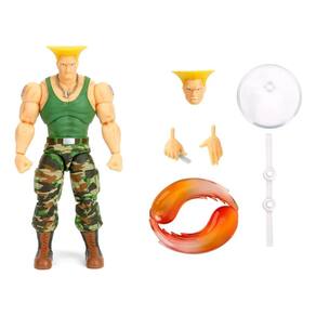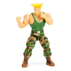 repare-se para o confronto final em um mundo onde a luta de rua é o evento principal! Revisite o mundo dos seus personagens favoritos do videogame Ultra Street Fighter II, agora como figuras de ação em escala 1:12 da Jada Toys. Reviva os combates lendários de Street Fighter II com esta incrível Action Figure do Guile, um dos personagens mais icônicos da franquia! Produzida pela Jada Toys, a figura é altamente detalhada, inspirada no visual clássico do soldado norte-americano, com uniforme militar, músculos bem definidos e a inconfundível cabeleira loira em formato flat top.