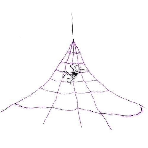 Teia de 16 pés que muda de roxo para laranja com aranha preta com luzes brancas puras. A teia expansiva com uma grande aranha preta cobre uma ampla área para facilitar a visibilidade à distância. Teia e aranha iluminadas para decoração assustadora à noite. Cabo de grafite longo para fácil conexão. Para uso interno e externo.