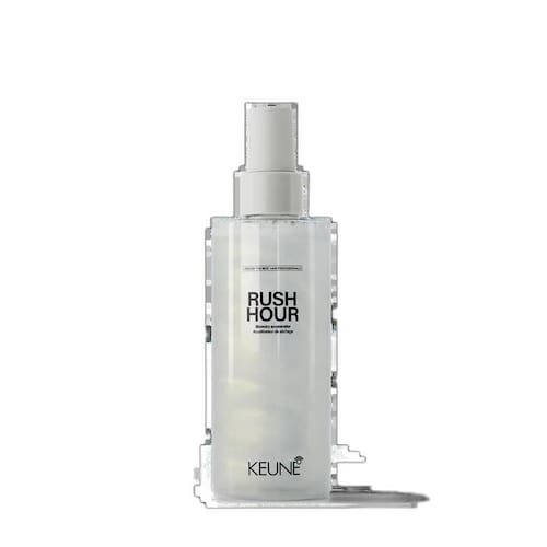 Faça uma escova mais rápida com Keune Style Rush Hour Ele acelera o tempo de secagem evitando danos extremos causados pela exposição ao calor prolongada , promove brilho, encorpa os fios sem deixá-los pesados, oferece proteção térmica até 230ºC e fortalece o cabelo com a tecnologia Bond Fuser integrada um exclusivo complexo que protege as pontes dissulfeto existentes e forma novas pontes, mantendo a integridade do fio .