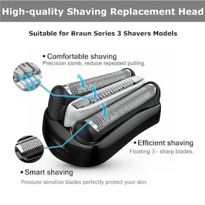 Características: Compatível com cabeças de substituição de barbeador Braun Series 3: 301S, 310S, 320S, 330S, 340S, 360S, 3000S, 3010S, 3020S, 3040, 350CC, 370CC, 3050CC e etc. Operação silenciosa: Peças de reposição da Série 3. É muito adequado para os aparelhos de barbear em uso e os decibéis não ultrapassam 30 dB, muito confortáveis e silenciosos. Peças de reposição para o seu uso diário. Material de alta qualidade: A cabeça de barbear série 3 é feita de ABS de alta qualidade e aço inoxidável Como usar: 1. Retire a unidade de barbear antiga. 2. Clique na nova cabeça da série 3. 3. Use o barbeador por 5 segundos ou mais. Dicas: 1. Depois de substituir a nova cabeça de barbeador, ligue-a por 5 segundos antes de usá-la para garantir que a cabeça de substituição tenha sido instalada com sucesso. 2. Se você tiver uma barba longa, aparar diretamente com a cabeça do cortador não funcionará bem, é recomendado usar o aparador atrás do barbeador primeiro. 3. Este item é uma peça de substituição. Limpe regularmente. Conteúdo da embalagem: 1 cabeça de barbear 32B S3. - ?Material de alta qualidade?Com um design flutuante de 3 lâminas, a cabeça de substituição de barbear garante um ajuste mais próximo aos contornos do seu rosto. Feita de malha de aço inoxidável, adapta-se perfeitamente à sua pele, proporcionando um barbear impecável sem causar irritação, garantindo assim uma experiência de barbear eficiente e confortável. - ?Antiferrugem e à prova d'água?Feita de materiais de alta qualidade, a cabeça de substituição de barbear da Série 3 apresenta excelentes propriedades à prova d'água e resistentes à ferrugem. Isso torna fácil remover e limpar após cada barbear. - ?Substituição simples?Substituir a cabeça do barbeador é muito fácil. Basta clicar na nova cabeça. A cabeça de substituição 32B restaura seu barbeador para um desempenho ideal, proporcionando um barbear mais rente a cada uso. - ?Ampla compatibilidade?Compatível com máquinas de barbear Braun Series 3 32B, incluindo modelos 3000s, 3010s, 3020s, 3030s, 3040s, 3050cc, 3070cc, 3080s, 3090cc, 320, 330, 340, 350cc e todos os aparelhos de barbear da Série 3. cabeças de barbear oferecem universal compatibilidade para substituição sem complicações. - ?Vida útil?A cabeça de substituição pode ter um período de quebra inicialmente, resultando em tempos de barbear ligeiramente mais longos – isso é normal. A vida útil da cabeça de substituição de lâmina e cortador varia de acordo com a frequência diária de barbear. Como orientação geral, recomenda-se substituí-lo a cada 12-15 meses para manter o desempenho máximo e garantir a melhor experiência de barbear.