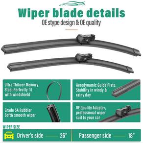 Conjunto de limpadores de para-brisa de 66.0 cm, 45.7 cm, 33.0 cm, substituição para Alfa Romeo Stelvio 2018 2019 2020 2021 2022 2023 Premium para todos os climas, qualidade Autêntico (pacote com 3) - [AJUSTE]: Substituição para 2018 2019 2020 2021 2022 2023 Alfa Romeo Stelvio 66.0 cm + 45.7 cm frontal com lâminas de limpador de para-brisa traseiro de 33 cm. - [Limpadores super transparentes]: A lâmina de borracha de alta qualidade garante uma limpeza eficiente e sem riscos. - [Fácil instalação]: processo de instalação fácil para substituição sem complicações, sem necessidade de adaptadores. - [Limpadores mais silenciosos]: Engenharia de precisão para contato ideal e distribuição uniforme de pressão, o design aerodinâmico reduz a elevação do vento e o ruído. - [Vida útil mais longa]: Estrutura durável para desempenho duradouro, resistente aos raios UV e temperaturas extremas para maior durabilidade.