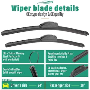 Conjunto de limpadores de para-brisa de 61 cm, 50,8 cm, 25,4 cm, substituição para Kia Soul 2020, 2021, 2022, 2023, premium para todos os climas, qualidade Autêntico (pacote com 3) - [AJUSTE]: Substituição para Kia Soul 2020 2021 2022 2023 61.0 cm + 50.8 cm frontal com lâminas de limpador de para-brisa traseiro de 25,4 cm. - [Limpadores super transparentes]: A lâmina de borracha de alta qualidade garante uma limpeza eficiente e sem riscos. - [Fácil instalação]: processo de instalação fácil para substituição sem complicações, sem necessidade de adaptadores. - [Limpadores mais silenciosos]: Engenharia de precisão para contato ideal e distribuição uniforme de pressão, o design aerodinâmico reduz a elevação do vento e o ruído. - [Vida útil mais longa]: Estrutura durável para desempenho duradouro, resistente aos raios UV e temperaturas extremas para maior durabilidade.