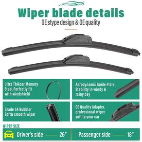 Conjunto de limpadores de para-brisa 66.0 cm, 45.7 cm, 20.3 cm, substituição para Lexus CT200h CT 200h 2011 2012 2013 2014 2015 2016 2017 premium para todos os climas - qualidade Autêntico (pacote com 3) - [AJUSTE]: Substituição para Lexus CT200h 2011 2013 2014 2015 2016 2017 Lexus CT200h 66.0 cm + 45.7 cm frontal com lâminas de limpador de para-brisa traseiro de 20 cm. - [Limpadores super transparentes]: A lâmina de borracha de alta qualidade garante uma limpeza eficiente e sem riscos. - [Fácil instalação]: processo de instalação fácil para substituição sem complicações, sem necessidade de adaptadores. - [Limpadores mais silenciosos]: Engenharia de precisão para contato ideal e distribuição uniforme de pressão, o design aerodinâmico reduz a elevação do vento e o ruído. - [Vida útil mais longa]: Estrutura durável para desempenho duradouro, resistente aos raios UV e temperaturas extremas para maior durabilidade.