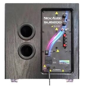 Subwoofer New Audio Sub 200Fd 8 Pol 200 WrmsMarca: newaudioModelo: sub200 8 polegadasQtde: 1 peçaSubwoofer ativo 8 polegadas - sub200O sub200 utiliza um amplificador classe ab plus e fonte analógica que torna o subgrave encorpado, envolvente e sem atrasos proporcionando outra sensação ao assistir filmes e ouvir músicas, se você curte filmes de ação, suspense, aventura e terror sua experiência será como se estivesse em um verdadeiro cinema e para ouvir músicas então será algo muito superior e surpreendente sua experiência. Através da entrada de sinal amplificado pode substituir a caixa passiva de home theaters que geralmente são mais fracos, tornando seu home theater muito melhor somente com o sub200. Possui um sistema liga-desliga inteligente e automático, ou seja, ao sentir a presença de sinal na entrada ele liga automaticamente após alguns segundos, e desliga em até 30 min ao perceber que não há mais sinal. Sendo assim não precisa se preocupar em ligar ou desligar o sub200 pois ele o faz sozinho. O sub200 é bivolt manual, selecione a chave seletora de voltagem antes de ligá-lo na tomada. Os alto-falantes de subwoofers foram desenvolvidos especialmente para a new audio, com características exclusivas, cone resistente de polipropileno pp , borda de borracha e alta excursão que aliado a tecnologia de sintonia newell possibilitou qualidade e desempenho impressionantes. O subwoofer frontal é a forma mais eficiente para sentir os impactos diretos pois não é refletida como em subwoofers voltados para o chão. Possui ajustes de volume, frequência de corte de 30hz à 180hz e inversão de fase 180º necessárias em instalações onde haja mais de um sub200 e/ou caixas frontais grandes. Para a newell a informação da potência é algo muito sério e informamos de acordo com o padrão roland japan mas também informaremos no padrão do mercado nacional: potência true rms: 120w 127vac / rl 4 ohms / freq. 100hz / thd1% . Potência máxima: 200wrms. Especificações técnicas do sub200 8 polegadas - alimentação: 127v/220v seleção manual - potência true rms: 120wrms 127v/rl 4 ohms/freq. 100hz/thd 1% - potência máxima: 200wrms - consumo: 0w chave off , 0,27w stand-by , 17,4w ligado sem som , 200w máx - fusível de proteção: 2af externo e 5at interno - sensibilidade de acionamento: 5mvpp - entradas: rca l/r/mono e borne de fios para sinal amplificado - seletor de fase: 0º ou 180º - controle frequência de corte: 30hz à 180hz - resposta de frequência: 38hz~180hz - dimensões lxaxp mm: 304 x 322 x 305 - peso: 10 kg