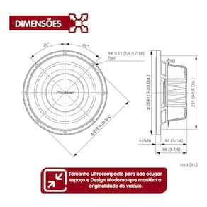 - Dimensões do Subwoofer: 264mm x 98mm;