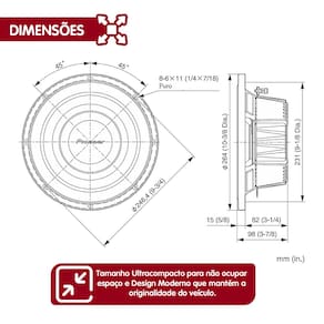- Dimensões do Subwoofer: 264mm x 98mm;