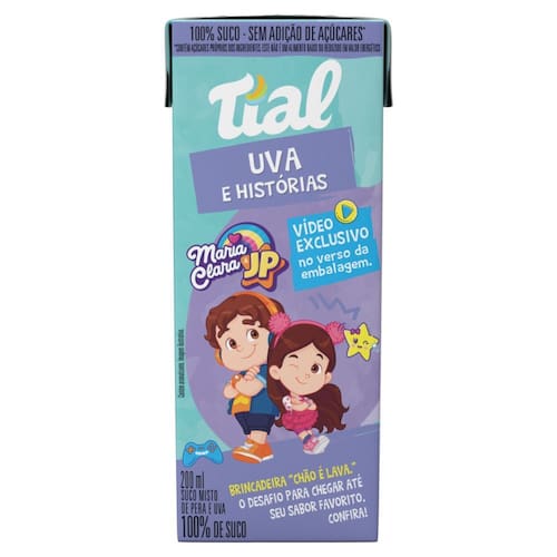Suco Tial 100% Uva e Historias Validade 12 meses Conservação Após aberto, manter refrigerado e consumir em até 3 dias. Obs.: Não consumir o produto caso a embalagem esteja danificada.