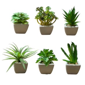 - material da suculenta: vasinho de cerâmica e plantinha artificial de plástico. - altura estimada do mini arranjo de suculenta, vaso e planta: 7 a 12cm dependendo do modelo da planta . - tamanho do vaso: 5cm de altura x 5cm de largura. Com modelos de acordo com a disponibilidade em estoque, esse mini vaso de suculenta é perfeito para quem busca uma decoração com o encanto das suculentas. Além disso, por serem artificiais, você não precisa se preocupar com a manutenção e cuidados específicos que as suculentas naturais exigem. Nota: esse anúncio se refere apenas ao mini vaso de suculenta artificial. As cores disponíveis são somente as verdes.