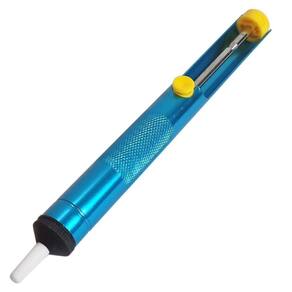 Sugador de Solda Estanho em Alumínio Profissional Guepar- Marca: Guepar- Referência: 861-2810- Material: Alumínio- Sugador de solda é uma ferramenta que serve para remover precisamente a solda em componentes de placas de circuitos integrados- Ideal para limpeza e manutenção de circuitos elétricos- Ponta feita em teflon de alta resistência térmica, aumentando a vida útil do produto- Seu funcionamento é muito simples pois, basta armá-lo empurrando o gatilho para baixo e em seguida aproximá-lo da solda que se deseja remover.:: Modo de usar:- Empurre o embolo até travar.- Derreta a solda no local desejado.- Encoste o bico do sugador na solda derretida e aperte o botão.- Comprimento: 18,50 cm- Cor: Azul- Categoria: Profissional- Garantia: 90 dias