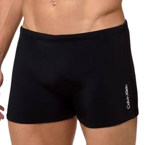 Sunga Calvin Klein Swimwear modelo Boxer fabricada em tecido com maior resistência ao cloro, permitindo maior durabilidade e melhor ajuste ao corpo. Modelo liso com silk da marca aplicado na lateral. Possui cordão interno personalizado e forro preto em todo o produto. Altura lateral aproximada de 26 cm a 28 cm.