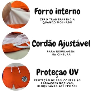 Sunga Infantil Boxer Natação Dragon Ball Z Dbz Proteção Solar Uv Filtro Fator Fps 50 Praia Piscina - Laranja - 12 anos