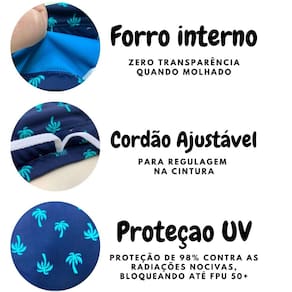 Sunga Infantil Boxer Proteção Uv Juvenil Coqueiros Natação Praia Piscina Azul Marinho - Azul Marinho - 8