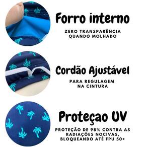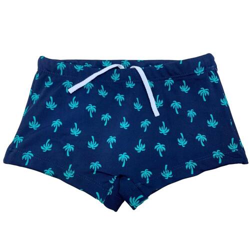 Sunga Infantil Boxer Proteção Uv Juvenil Coqueiros Natação Praia Piscina Azul Marinho - Azul Marinho - 12 anos