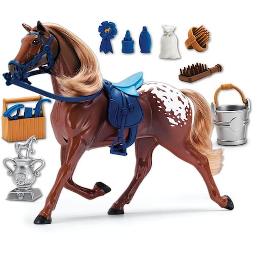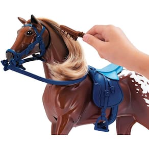 Sele-se por horas de grandes trilhas divertidas e felizes com o Blue Ribbon Champions Deluxe Appaloosa Horse. Os amantes de cavalos de todos os tipos admirarão a cabeça móvel, a jua e a cauda escovadas, e os sons de vida que vêm com este brinquedo. A sela removível, acessórios de alimentação e pincéis de brinquedo adicionam às aventuras de cuidar deste brinquedo de cavalo. Misture com outros brinquedos e conjuntos estáveis ou use-o por conta própria. Os equestres juniores vão adorar se acotoar e galopar com este divertido cavalo de brinquedo, em seguida, mover a cabeça para ouvir sons realistas. Detalhes realistas e construção forte fazem dele um dos favoritos para os entusiastas de cavalos de todas as idades!
