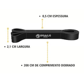 Super Band Média, Forte e Super Forte Elástico Extensor Musculação Bravus Sport Kit 3 Super Band Bravus Sport Preta, Roxa e Verde : Tenha esse quarteto fantástico em sua casa e conquiste um corpo invejável Cada uma das super bands Bravus Sport tem uma finalidade diferente e você pode aproveitar todos os seus benefícios com esse super Kit BENEFÍCIOS e USO: 1.Aquecimento - Vermelha e Preta 2.Trabalho muscular - vermelha e preta: principalmente nos músculos curtos como por exemplo tríceps e bíceps e exercicios para articulações. 3. Trabalho muscular - roxa: principalmente nos músculos maiores como os dos membros inferiores 4. Trabalho muscular - verde: princiaplmente para membros inferiores - Agachamento e Afundo. Excelente para trabalhos de resistência Para trabalho de ganho muscular, use cada uma das super bands e diversifique a resistência dos exercícios Vermelha - Menor Resistência, Preta - Média Resistência - Roxa - Maior Resistência . 3. Barra Fixa - Vermelha - Utilizada também para auxíliar no aumento do número de elevações na barra fixa Red . 4. Barra Fixa - Preta - Use também para auxiliar na altura da elevação da barra fixa Black 5. Barra Fixa - Roxa - Para quem precisa de assistência mediana para executar os exercícios na barra e evoluir com mais rapidez Melhora de 20 à 40% na elevação 6. Barra Fixa - Verde - Para quem precisa de maior assistência para executar os exercícios na barra e evoluir com mais rapidez Melhora de 30 à 50% na elevação. Na barra fixa, comece com a super band Roxa para ter mais assistência e vá avançando para as bands mais finas, a Preta que lhe ajudará com a altura da elevação e posteriormente use a vermelha. Uma evolução rápida e completa alguns exercicios que você pode fazer com o Kit Super Bands Bravus Sport: Band Aparts / Shoulder Press - exercício focado no desenvolvimento dos ombros Remada Unilateral - Exercicio que trablha os músculos das costas e braço Rosca Bicepcs Bicep Curl - Qualquer um de vários exercicios que tem como foco o músculo bíceps Crossover / Elevações / Agachamentos as Super Bands Bravus Sport apresentam um design de alta qualidade e é feita com borracha espessa e durável. O kit Bravus vem com os seguintes itens: 3 Super Band Elástico Extensor Borracha: Dimensões: Medium Black: 2,1 cm largura x 0,5 espessura x 208 comprimento dobrado - Resistência Equivalente: 11 à 29kg Purple Strong: 3,2 cm largura x 0,5 espessura x 208 comprimento dobrado - Resistência Equivalente: 15 à 38kg Super Strong Green: 4,5 cm largura x 0,5 espessura x 208 comprimento dobrado - Resistência Equivalente: 22 à 56kg