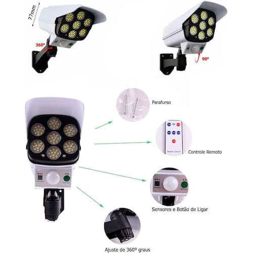 Super Câmera Fake Solar Prova Dágua 7 Cobs 42 Super Leds