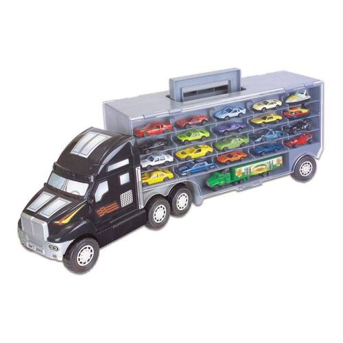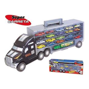 Lindo caminhão que permite usá-lo para guardar os carrinhos. Você também pode guardar mais 21 carrinhos além dos que acompanha o caminhão. A criançada vai adorar!Especificações:- Conteúdo da Embalagem: = 1 Carreta de Plástico, 20 Miniaturas de Carrinhos de Metal e 1 Miniatura de Caminhão de Metal- Dimensões aproximadas do produto: Carreta = 22 cm (Altura) x 13 cm (Largura) x 63 cm (Comprimento) / Miniatura de Caminhão = 4 cm (Altura) x 2,5 cm (Largura) x 18 cm (Comprimento) / Miniatura de Carrinho (medidas aproximadas) = 1,5 cm (Altura) x 3 cm (Largura) x 7 cm (Comprimento)- Peso líquido aproximado do produto - 2,98 Kg- Idade recomendada - a partir de 4 anos- O brinquedo se movimenta com a ajuda da criança- A ação do brinquedo não depende de pilha/bateria. Só depende da ajuda da criança- Brinquedo sem luz e sem som- As cores dos carrinhos são meramente ilustrativas