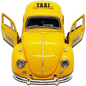 Super carrinho de ferro fusca clássico 1967 miniatura cor amarelo táxi Super carros clássicos fusca réplica identica escala 1:32