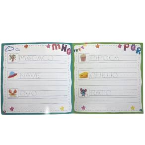 Este livro permite que as crianças tracem as letras, escrevam palavras simples e se divirtam com atividades criativas relacionadas ao alfabeto. A funcionalidade "escreva e apague" torna o aprendizado contínuo e sem frustrações, pois os erros podem ser facilmente corrigidos. As canetas coloridas incentivam a criatividade e tornam o processo de aprendizagem ainda mais envolvente.