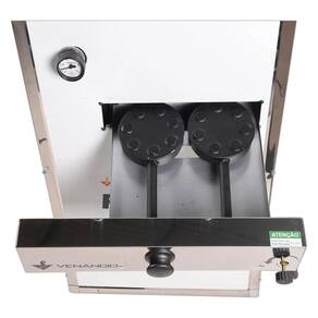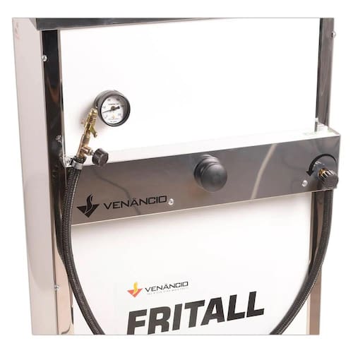 Em sua parte frontal, ficam o termômetro onde o usuário pode ter acesso a temperatura do óleo, puxador da gaveta do queimador, que permite o fácil acendimento do equipamento e botão regulador giratório responsável por abrir e fechar o gás.