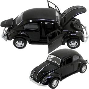 Super fusca preto carrinho fusquinha miniatura ferro fricção abre porta e capô Super carros clássicos fusca réplica identica escala 1:32