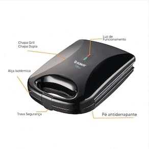 Super Grill Elétrico Sumay Cusine com chapas antiaderentes, 1200W de potência, design compacto e moderno. Ideal para grelhados rápidos e saudáveis.Termostato regulável