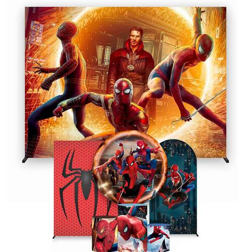 Super Kit de Painéis de Festa Homem Aranha Painel Redondo 1,30 e Retangular Várias Medidas - Fera Print - Cor: Homem Aranha 14 | Medidas do Painel: Painel Retangular 5,00x2,50 metros