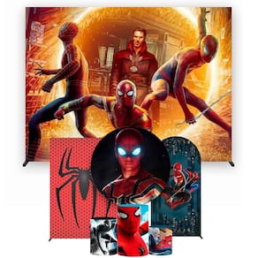 Super Kit de Painéis de Festa Homem Aranha Painel Redondo 1,30 e Retangular Várias Medidas - Fera Print - Cor: Homem Aranha 12 | Medidas do Painel: Painel Retangular 4,00x3,00 metros