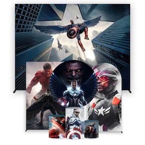 Super Kit de Painéis de Festa Novo Capitão América - Fera Print - Medidas do Painel: Painel Redondo 1,80 metros | Medidas do Painel: Painel Retangular 4,50x3,00 metros