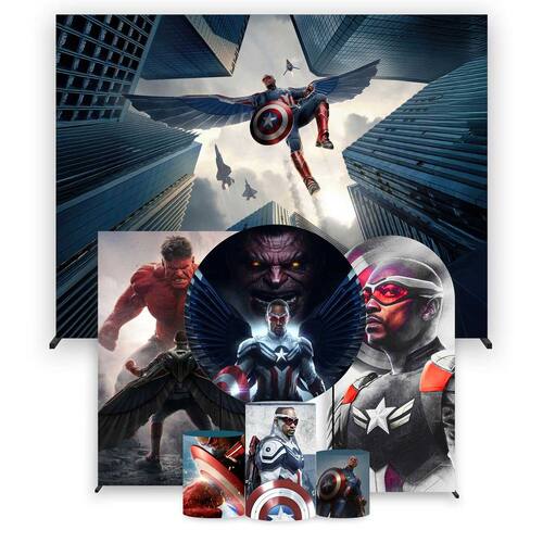 Super Kit de Painéis de Festa Novo Capitão América - Fera Print - Medidas do Painel: Painel Redondo 1,30 metros | Medidas do Painel: Painel Retangular 4,50x3,00 metros