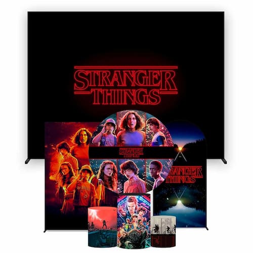Super Kit de Painéis de Festa Stranger Things Painel Redondo 1,30 e Retangular Várias Medidas - Fera Print - Cor: Stranger Thinks 2 | Medidas do Painel: Painel Retangular 4,00x2,80 metros