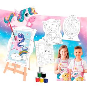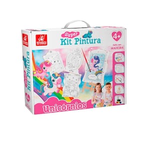Super Kit Pintura Unicórnios - Brincadeira de Criança Exercite seus dotes artísticos com o Super Kit Pintura Dinossauros, são 4 telas para voce se divertir sendo o artista de seu próprio mundo jurássico. Ean: 7898565512563