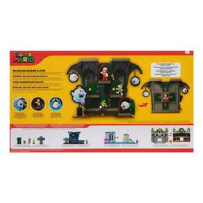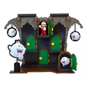 Conheça os novos playsets de Super Mario. Cada Playset contém bonecos e acessórios exclusivos, inspirados em fases dos jogos. Neste Playset Deluxe, reviva as aventuras que Mario passou na Mansão Mal-Assombrada de Boo. Você poderá transportar Mario por cada porta, mover King Boo e rodar os Boo's.