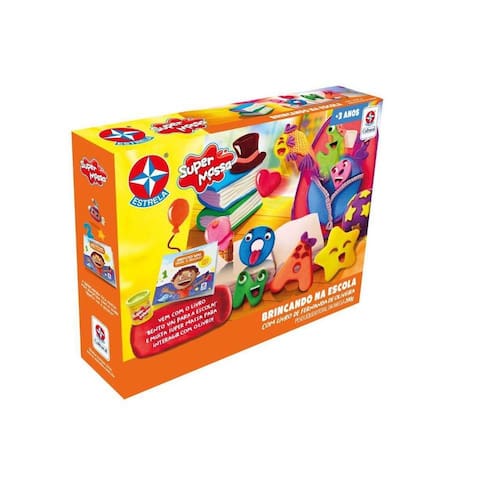 Super Massa Brincando na Escola com Livro - Estrela A criançada vai dar aula nessa brincadeira Bento é um menino muito concentrado no que mais gosta de fazer: brincar. Sua imaginação está sempre a mil por hora. Até que um dia, assustado, ele descobre que vai à escola. Será que acabou a sua alegria de brincar Bento pensa que sim. Mas, por fim, tem uma grande surpresa. Junte-se a Bento nas suas criativas brincadeiras e divirta-se com os complementos que acompanham este livro. Características: Material: plástico. Formas geométricas. Números. Figuras divertidas. Carimbo com o alfabeto completo para formar palavras e frases. Com 4 potes de super massa. Livro Bento vai à escola de Fernanda de Oliveira. Certificação Inmetro: CE-BRI/IQB-006332. Idade recomendada: A partir de 03 anos. Conteúdo e Dimensões: Conteúdo: 1 livro interativo, 26 formas do alfabeto, 1 forma dupla face de números e figuras, 3 formas dupla face formas geométricas, 1 faca plástica, 1 rolinho e 4 potes super massa 50g cada. Dimensões da Embalagem aprox.(axlxp): 24 x 30 x 6 cm. Informações Adicionais: Atenção Esta embalagem contém lacres. Retirar antes de entregar o brinquedo à criança. Atenção Não recomendável para crianças menores de 03 anos. Atenção Imagem meramente ilustrativa. As cores podem variar. Atenção Manter a embalagem longe do alcance de crianças. Atenção Recomenda-se a supervisão de um adulto durante o uso do produto. Atenção Produto sortido. Enviado conforme disponibilidade de estoque. Atenção Contém glúten na super massa. Informações Técnicas: Modelo: Super Massa Brincando na Escola com Livro. Fornecedor: Estrela. Referência: 3005101300011.