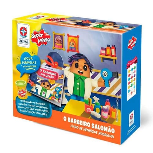 Idade recomendada: 3 anos+ Dimensões aproximadas da embalagem: AxLxP 30 x 24 x 8cm Peso aproximado do Produto com Embalagem: 640g Código do Produto: 3005101300026 Conteúdo da embalagem: 1 livro, 4 potes de 50g de Super Massa, 1 cadeira extrusora, 2 personagens, 1 tesoura, 1 pente, 1 cortador de cabelo e 1 faquinha plástica Código INMETRO: 001793/2020 Fornecedor: Estrela