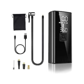 Super Mini Compressor Digital Bomba De Encher Pneus Bola Portátil Para Motocicletas Carro Bicicleta Preto Com Calibrador Super Compressor Calibrador Bomba de Encher Pneu Portátil sem fio - Liberdade e Conveniência em Suas Mãos Diferenciais - Alta Potência, maior durabilidade de bateria, lanterna, luz de advertência, luz de sinalização. Com o Compressor Portátil, você está no controle total da pressão dos seus pneus e infláveis onde quer que vá. Com sua bateria interna de 4500mAh recarregável, este compressor oferece potência sem a necessidade de cabos incômodos ou conexões complicadas. Desfrute de mobilidade absoluta, seja em emergências na estrada, no trajeto diário ou em aventuras ao ar livre. Sua impressionante tecnologia sem fio permite inflar pneus, bolas, colchões de ar e muito mais, sem a necessidade de conexão ao acendedor de ou tomada. Compacto e leve, o tamanho equivalente a um smartphone de tela de 4,7 polegadas, com apenas 490 gramas, este compressor é perfeito para caber no porta-luvas, na moto ou na sua mochila, tornando-se um fiel companheiro em qualquer situação. Você terá total visibilidade e controle da pressão com o visor digital integrado, garantindo precisão e facilidade de uso. Além disso, a pequena lanterna integrada oferece iluminação em ambientes de baixa luz, proporcionando ainda mais praticidade. Recarregar é uma tarefa rápida e eficiente, graças à interface de carregamento via cabo USB Tipo-C, incluso no kit. O Compressor Portátil acompanha uma variedade de bicos, incluindo um bico para pneu com rosca segura, bico para bola e até mesmo bicos para infláveis. Você estará sempre preparado para qualquer situação. Especificações: Material: ABS resistente e durável. Potência: 120W para inflação rápida. Fluxo de ar: 25L/min para resultados rápidos. Pressão de inflação: 0-150PSI Unidade: PSI/BAR/KPA/KG-CM2 Interface de carregamento via cabo USB Tipo-C. Cabo para carregamento não acompanha a fonte Cabo auxiliar para alimentação veicular